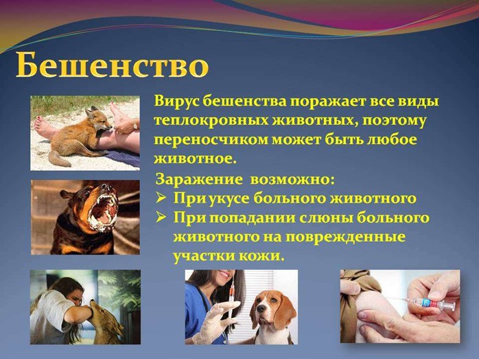 Бешенство является вирусным зоонозом, к которому восприимчивы все виды теплокровных животных, в первую очередь - плотоядные животные (семейства собачьих, кошачьих, куньих, енотовых и других), могут также болеть грызуны, летучие мыши.